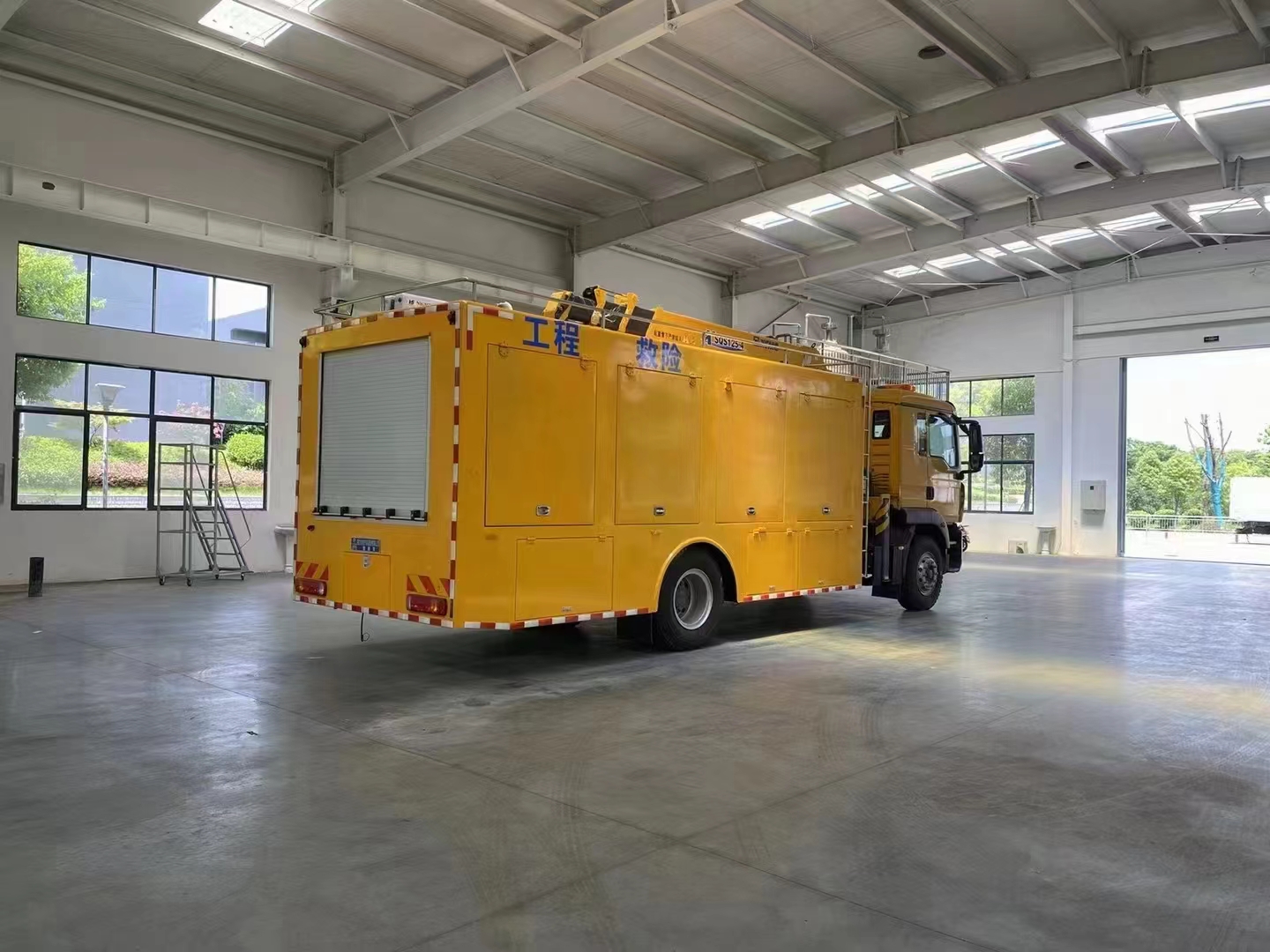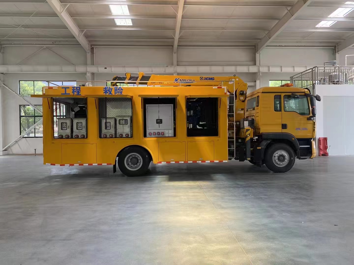 上裝配置  豪沃帶吊救險車配徐工5噸4節直臂吊機,常用功率200KW發電機組,可以選配8臺500方便攜泵,。或1臺1000方自吸泵加6臺500方便攜泵,總排水量4000方/小時。安裝升降照明系統及液壓支撐系統,整車智能系統…