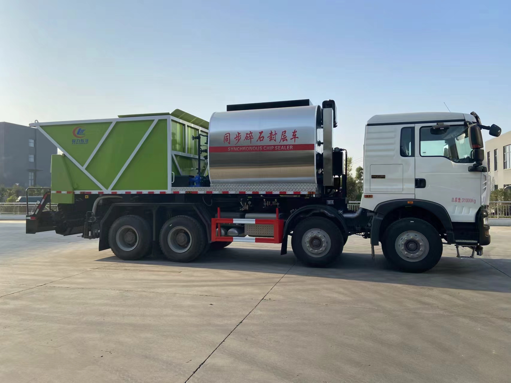 設備優點 獨家采用全液壓驅動模式,不需要添加任何輔助動力使操作更加簡單方便。獨家采用高效的導熱油鍋爐升溫,使溫升速度大大的得到提升,打破了傳統的煙道加溫方式。該設備采用內舉升料斗就可實現石屑撒布施工,更方便涵洞施工、橋下施工、以及彎道施工;該設備完全采用電氣控制,自動化程度高,能精確的計算出設備在施工過程中瀝青噴灑量和石屑撒布量的多少;料門控制采用角度儀,保證設備下料的精度;降低了施工的勞動強度,節約了人力資源,降低施工成本,提高工作效率、工作質量;整機運行穩定,撒布均勻,可自由調節灑瀝青撒料寬度;良好的保溫層確保保溫性能指數≤20℃/8h,且防腐耐用;可以噴灑各種瀝青介質,撒布從S3~S24mm的石料;設備采用加工精確度高的噴嘴,使每個噴嘴噴灑一致性和噴灑效果得到充分保證;整體操作更具人性化,具有遠程控制,也有現場操作,給操作者帶來了很大的便利;通過電氣控制與液壓系統恒壓裝置的完美結合,實現了零起步噴灑;整機經過多次的工程施工改進,工作性能可靠,操作維護方便,性價比高。
