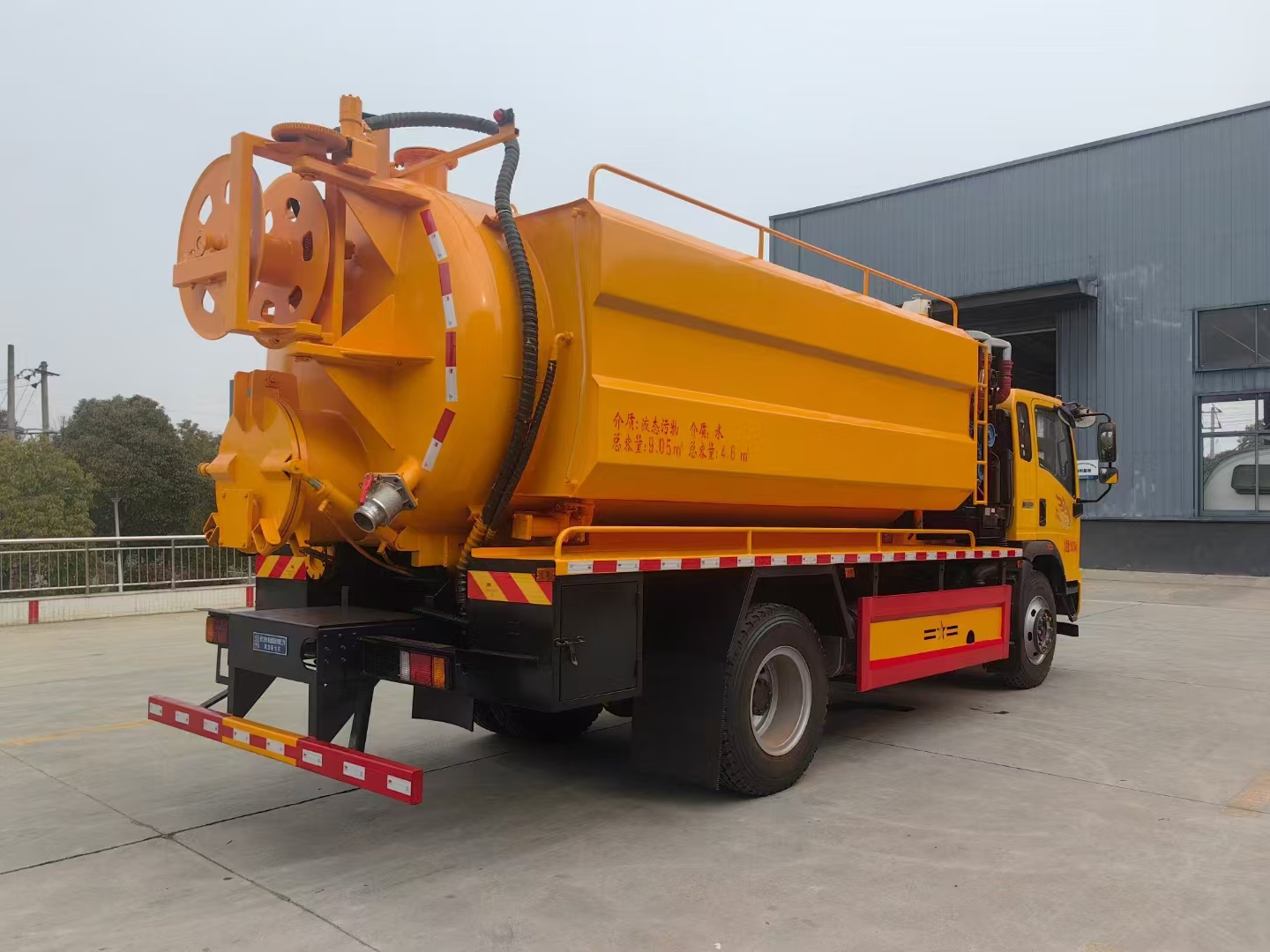 上裝配置 吸污罐容積約11立方,清水箱約3.5立方,污水罐8mm制作,清水箱4mm制作,采用品孚255流量高壓泵,帶60米22號高壓管,液壓卷盤。 污水罐約11立方:375副發SK-30水循環泵,水循環泵水箱為碳鋼材質,頂部防溢閥,后門處150球閥排污,100球閥直通罐頂吸污,作業適用場景最廣泛工作最高效!