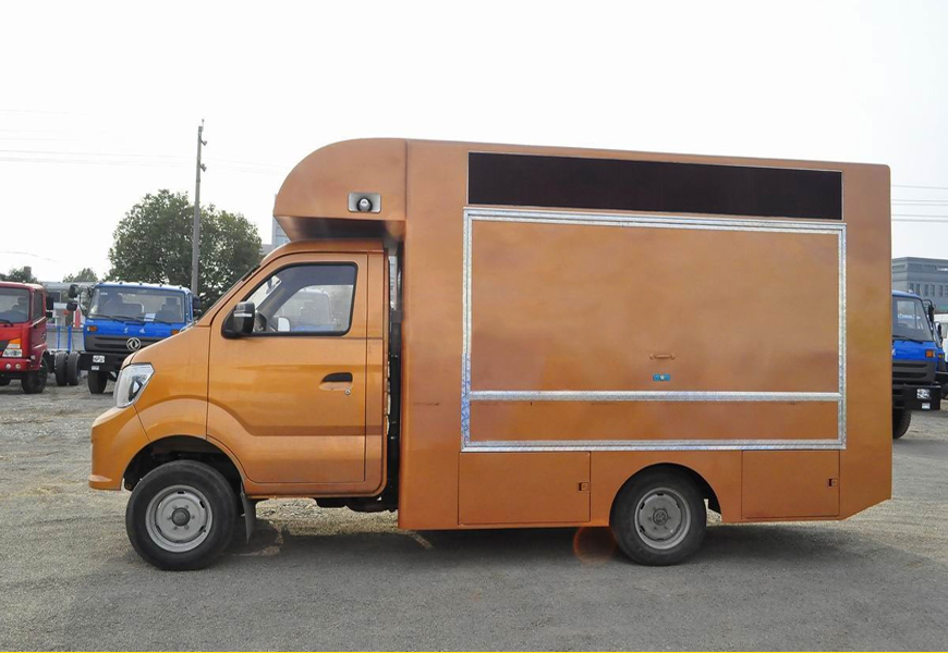 流動售貨車主要作用流動售貨車可以停放在休閑廣場、步行街口、車站、碼頭、校園、慶典活動現場、體育場館、旅游景點等場所,還可以開到郊外鄉鎮趕場。該車集中體現其宣傳、配送、現場售賣、促銷活動等價值,適用于大小型零售企業形象宣傳等。不僅在外觀上更加美觀,內部結構也根據實際需求進行了有關調整,并對內部裝飾格局添加了優質材料。如:內部各側面板采用家用裝飾板封面,并用鋁條壓邊;是一款新型多功能、多區域輕型流動性售賣車。
